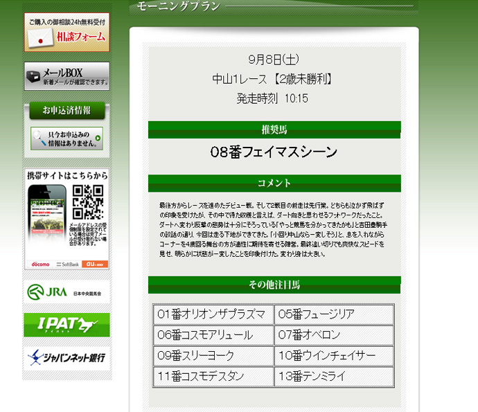 9月8日のモーニングプランの無料情報が的中していました。