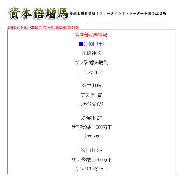 無料情報は多くあるんですけどその中でもウチがいいと思ったのは「資本倍増馬」ですね~